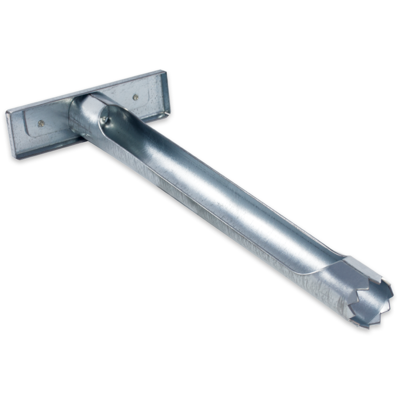 Un muestreador de acero galvanizado de 12″ con un núcleo de 1″ de diámetro, punta dentada en forma de sierra y un lado cortado para examinar el núcleo antes de su retirada para pruebas.