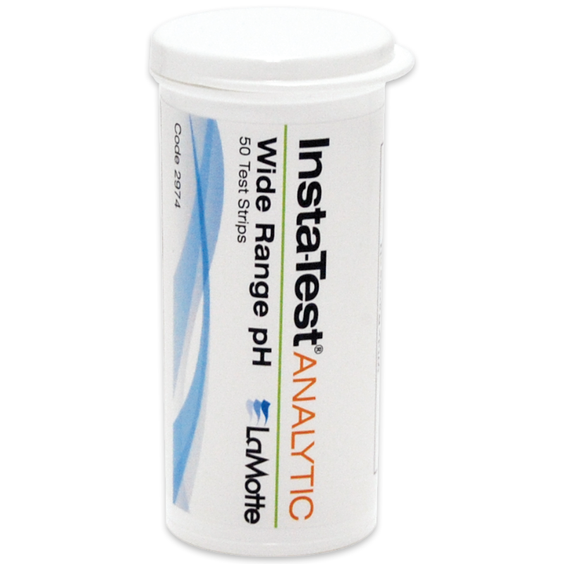 Las tiras de pH Insta-TEST® Wide Range son una forma cómoda de analizar el pH del agua. El rango y la sensibilidad son 4, 5, 6, 7, 8, 9, 10.