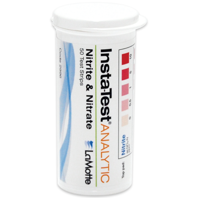 Las tiras reactivas de nitratos / nitritos Insta-TEST® son una forma conveniente de analizar rápidamente el agua en busca de nitratos. Rangos y sensibilidad: Nitrato – 0, 5, 10, 25, 50 (NO3-N), Nitrito – 0, 0,5, 1, 5, 10 (NO2-N).