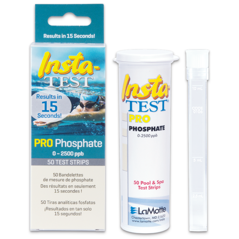 La tira Insta-TEST® PRO Phospate Low Range mide los niveles de fosfato desde 0, 100, 200, 300, 500, 1000 y 2500 ppb. La tira reactiva de fosfato es una tira tipo reactivo con resultados en 15 segundos. Las tiras de fosfato PRO vienen envasadas en 50 tiras por botella en un paquete de 6 cápsulas.