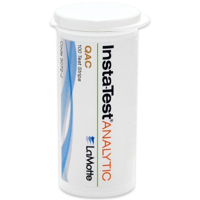 La tira de control de calidad de Insta-TEST® es una forma cómoda de medir los niveles de control de calidad en agua sanitizada. El rango y la sensibilidad son 0, 100, 200, 300, 400, 500 ppm, y tiene 100 tiras reactivas por vial.