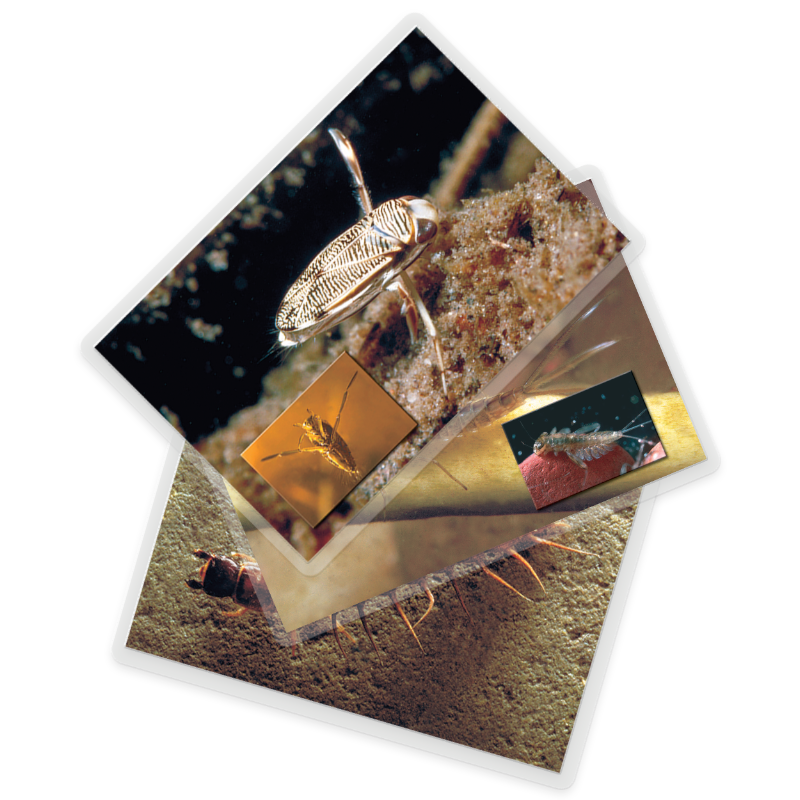 El anportado de cada tarjeta muestra una fotografía a todo color de un macroinvertebrado común en su entorno natural. Una lista de características dicotómicas, una escala de medición y dibujos detallados en el reverso de cada tarjeta ayudan en el proceso de identificación.