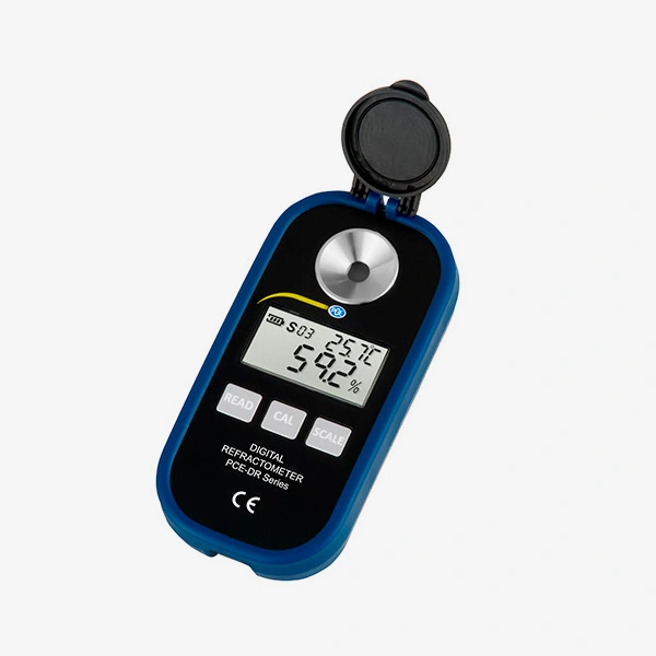 El refractómetro digital es un instrumento resistente al agua y determina el contenido de azúcar, con un rango de medición de 0 hasta 30 % Brix. El resultado de la medición y de la temperatura se muestra en la pantalla LCD del refractómetro digital en dos líneas. El refractómetro digital puede medir diferentes parámetros como el Brix y %TDS (total de sólidos disueltos del café en %), con tan solo cuatro o cinco gotas de la muestra de manera rápida y precisa. Los campos de aplicación del refractómetro digital es muy amplio, desde la recogida de la fruta hasta el control de calidad. Es ideal para la industria de la alimentación para el control del contenido y el cumplimiento de la normativa.