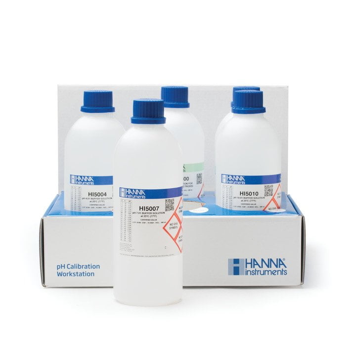 - Los tampones Hanna están especialmente formulados para mantener su valor de pH en una botella sin abrir.